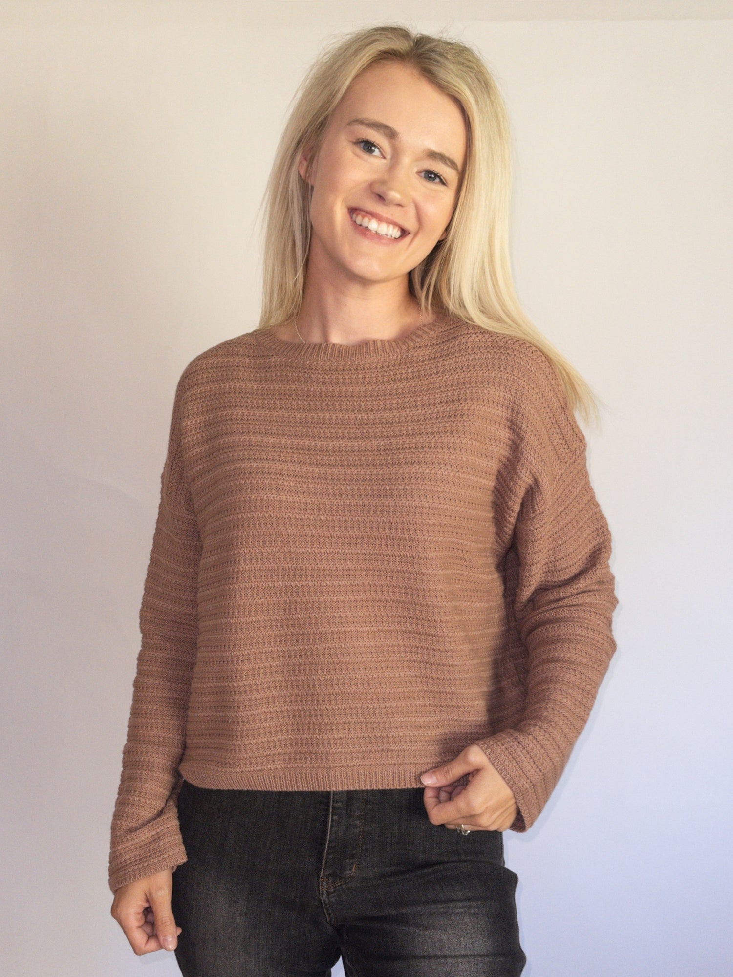 This playful pullover features a cropped length, boat neckline, and relaxed fit. Crafted from textured crochet knit with charming drop shoulders, it’s the perfect fun and stylish sweater to cozy up your day.