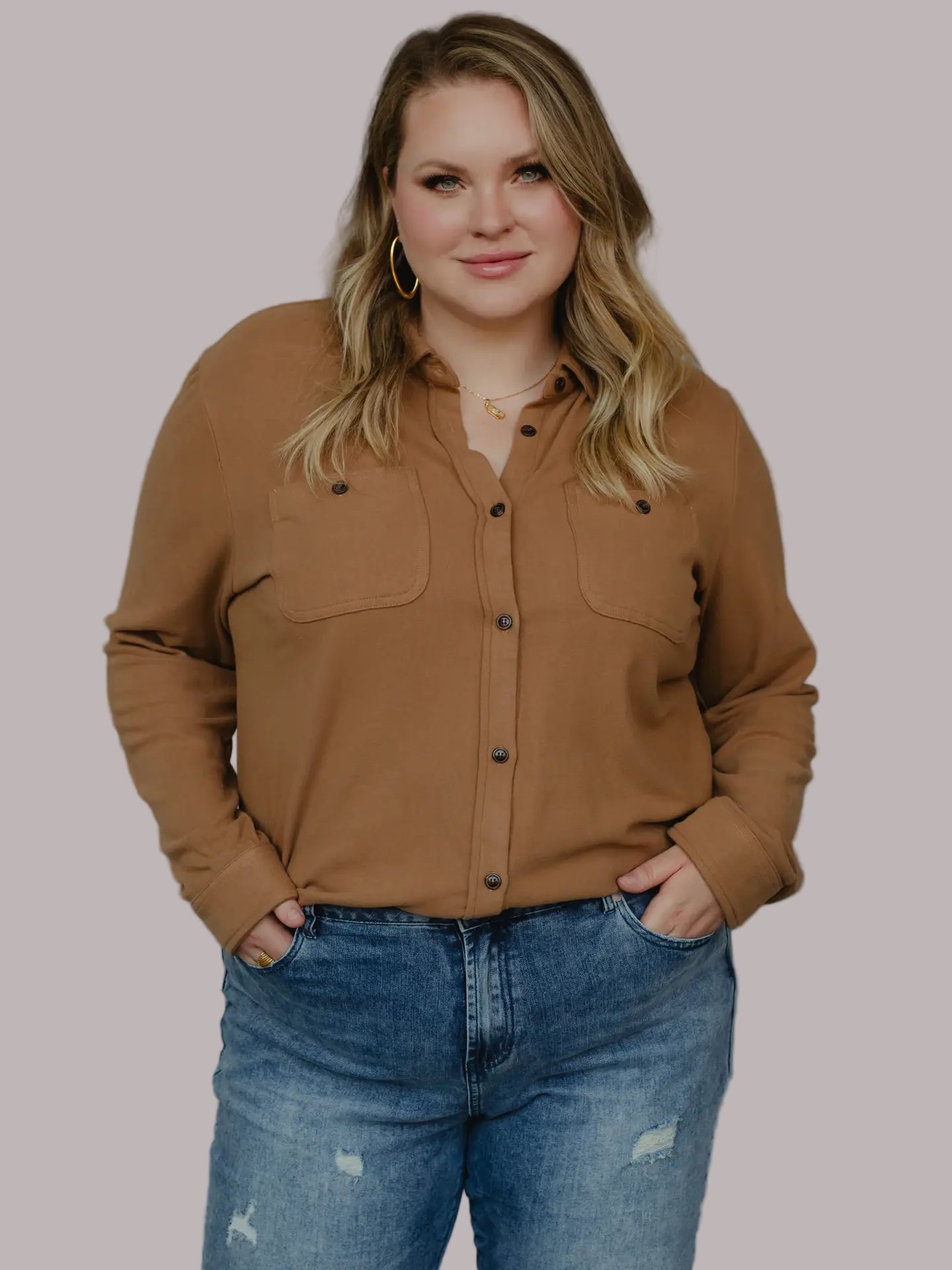 Dark Tan Super Soft Button Up