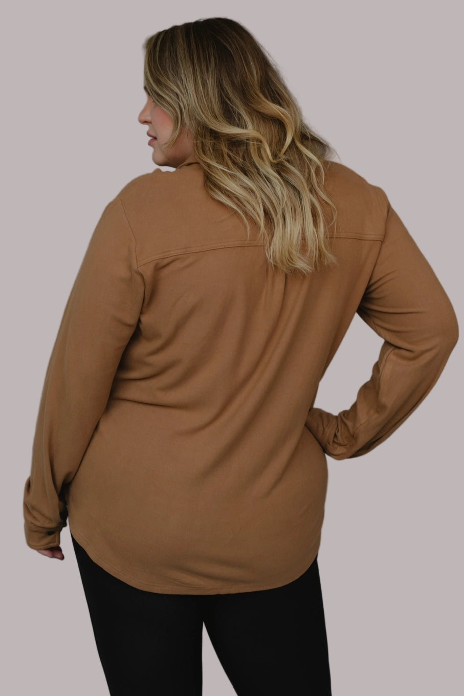 This XXL dark tan top is super soft and features a playful button-up front. Made from a cozy blend of 75% rayon, 15% acrylic, and 10% spandex, it’s perfect for easy, breezy style.