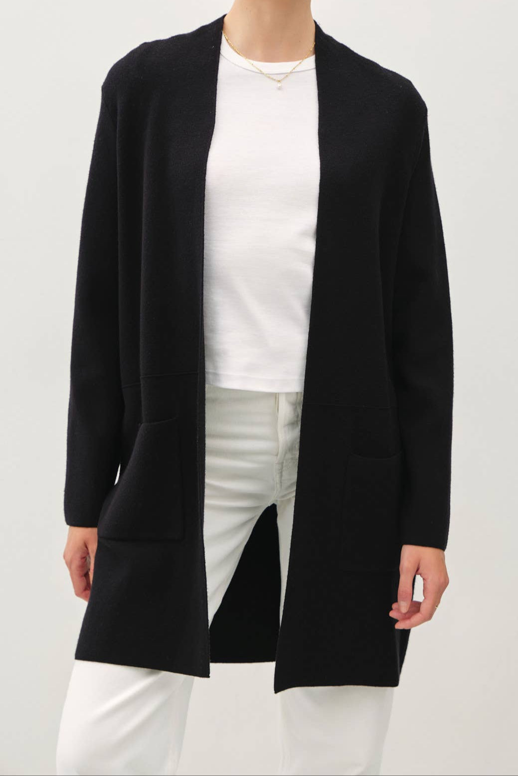 Easy to wear with an open front, this knit cardigan coat features delicate seam accents and cozy long sleeves. Equipped with handy front patch pockets, it’s ultra-soft, warm, and irresistibly comfy — your go-to classic for fall and winter days.