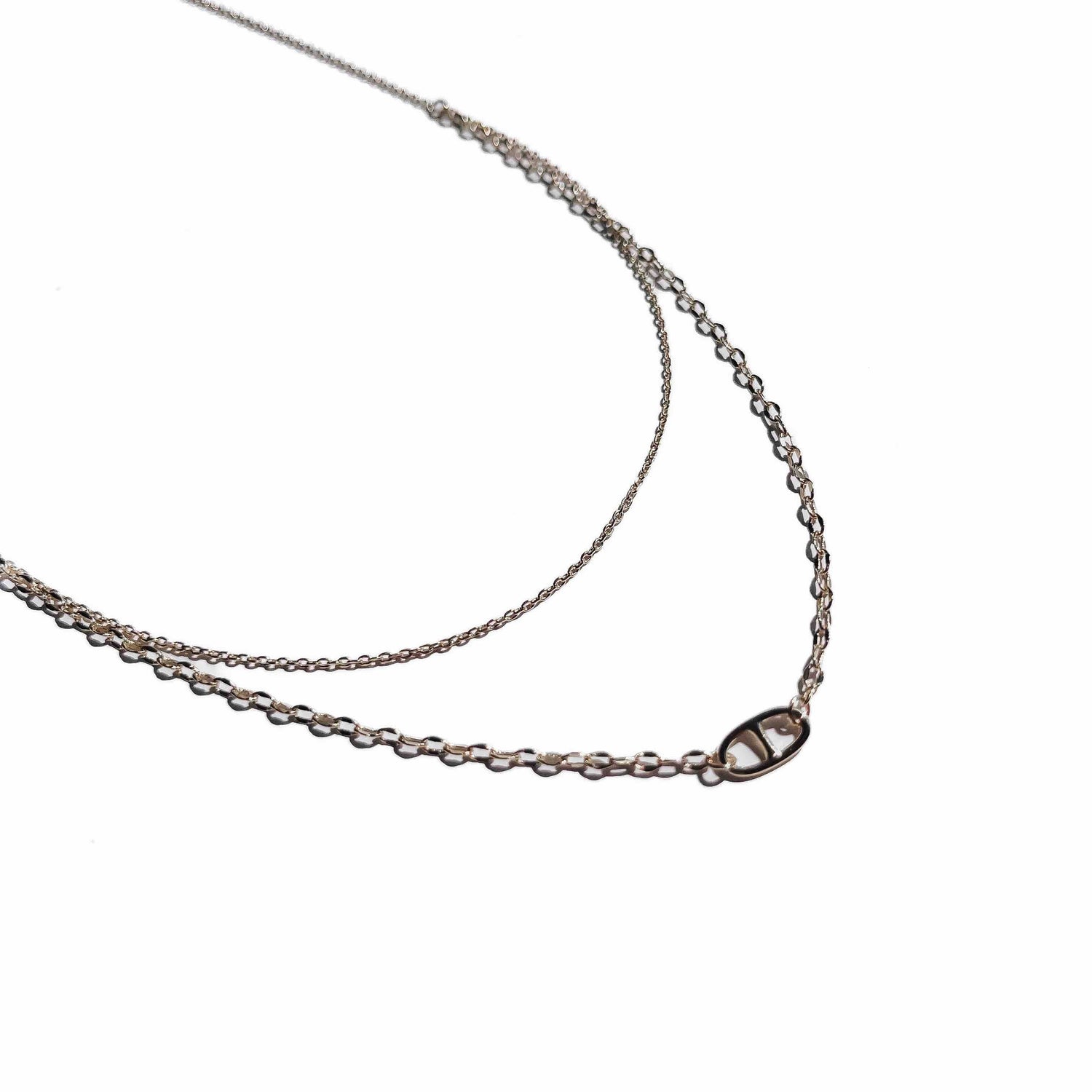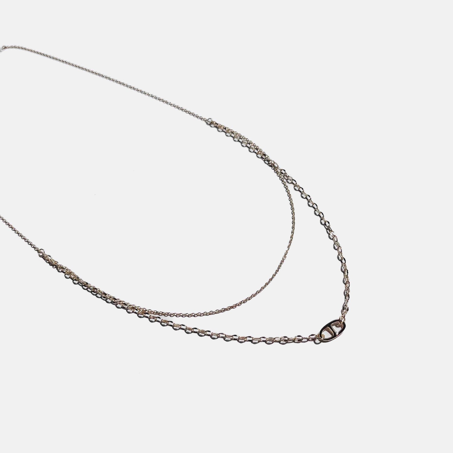 The Parker Oval Pendant Layered Necklace is a classic accessory to style any look for day or night. Comes in silver, the 2 layered necklace style has an oval pendant at the center with two different chain styles. Wear it alone or layer it with others for a trendy look.
