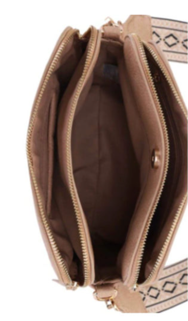This vibrant red crossbody purse brings the perfect mix of style and function to your day. Featuring a removable, adjustable guitar strap with shiny gold hardware, it lets you customize your look effortlessly. With three compartments—including two zippered and one buttoned—plus inside slip and zip pockets, your essentials stay organized and easy to find. Compact at 9.5″ x 3.75″ x 7.25″, it’s the playful statement piece your outfit’s been waiting for.