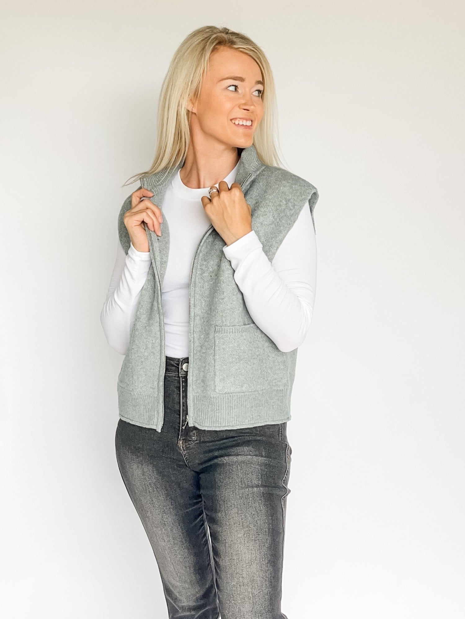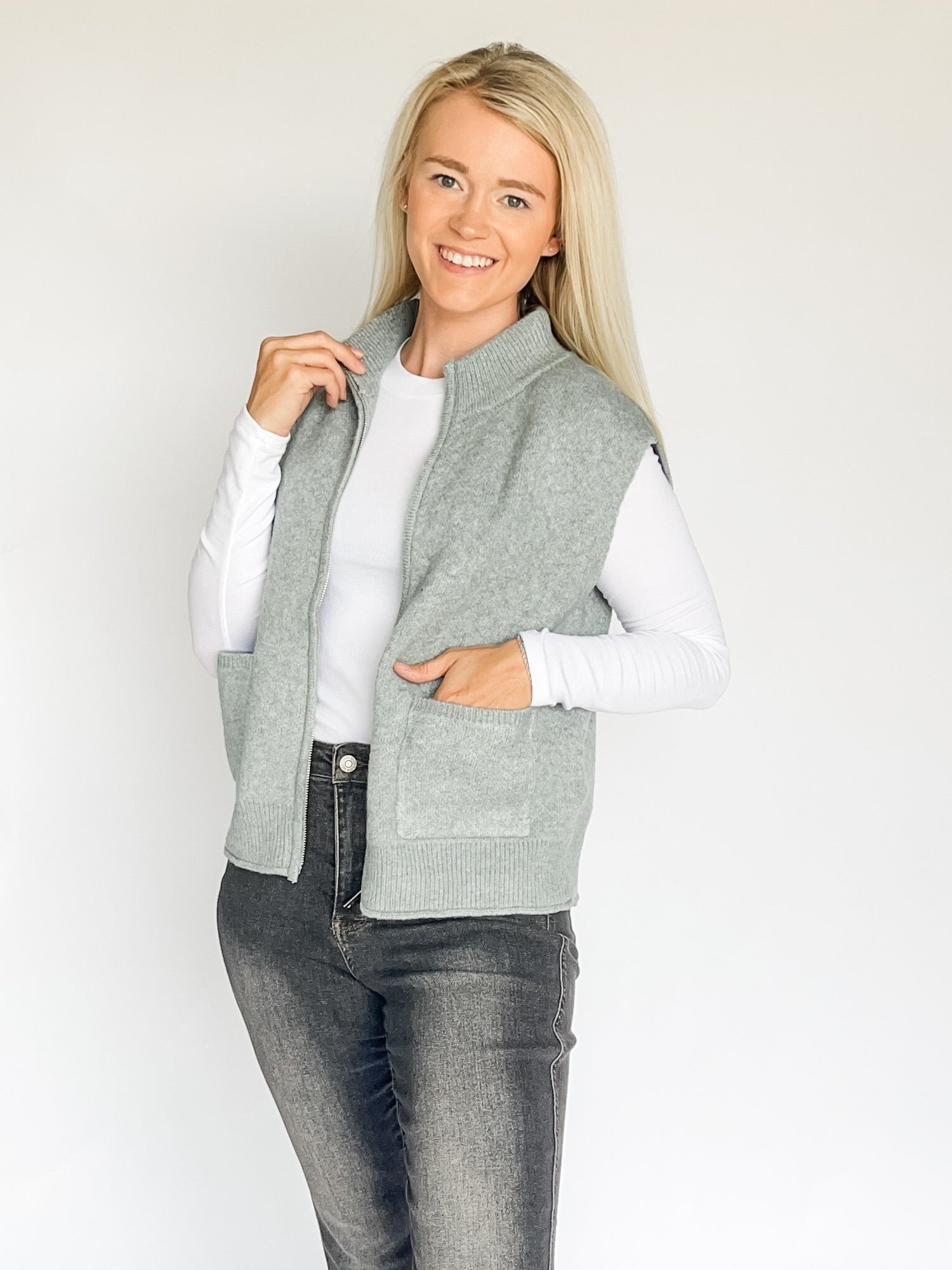 This playful sweater vest features a cozy mock neck and a handy zipper closure for easy wear. Extended sleeves add a fun twist, while patch pockets bring charming practicality. Made from a soft blend of acrylic, polyester, and nylon, it keeps you comfortable and stylish all day long.