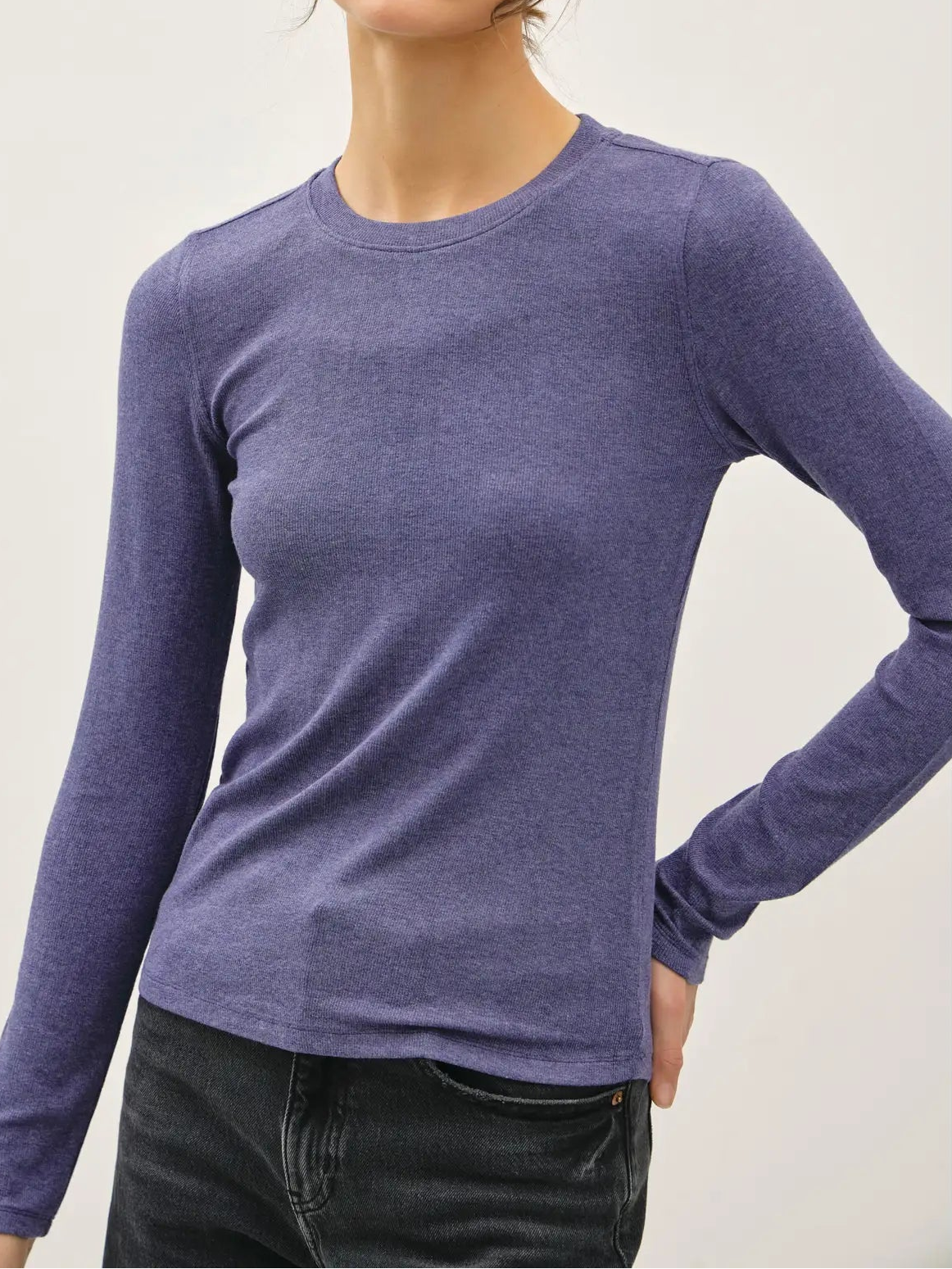 This skipper blue ribbed knit top comes with a comfy round neckline and long sleeves, making it a perfect layering essential. Crafted from soft, stretchy fabric, it offers a relaxed slim fit that sits right at the waist. A true wardrobe staple, this pullover blends casual, classic, and minimal styles effortlessly for everyday wear across all seasons.