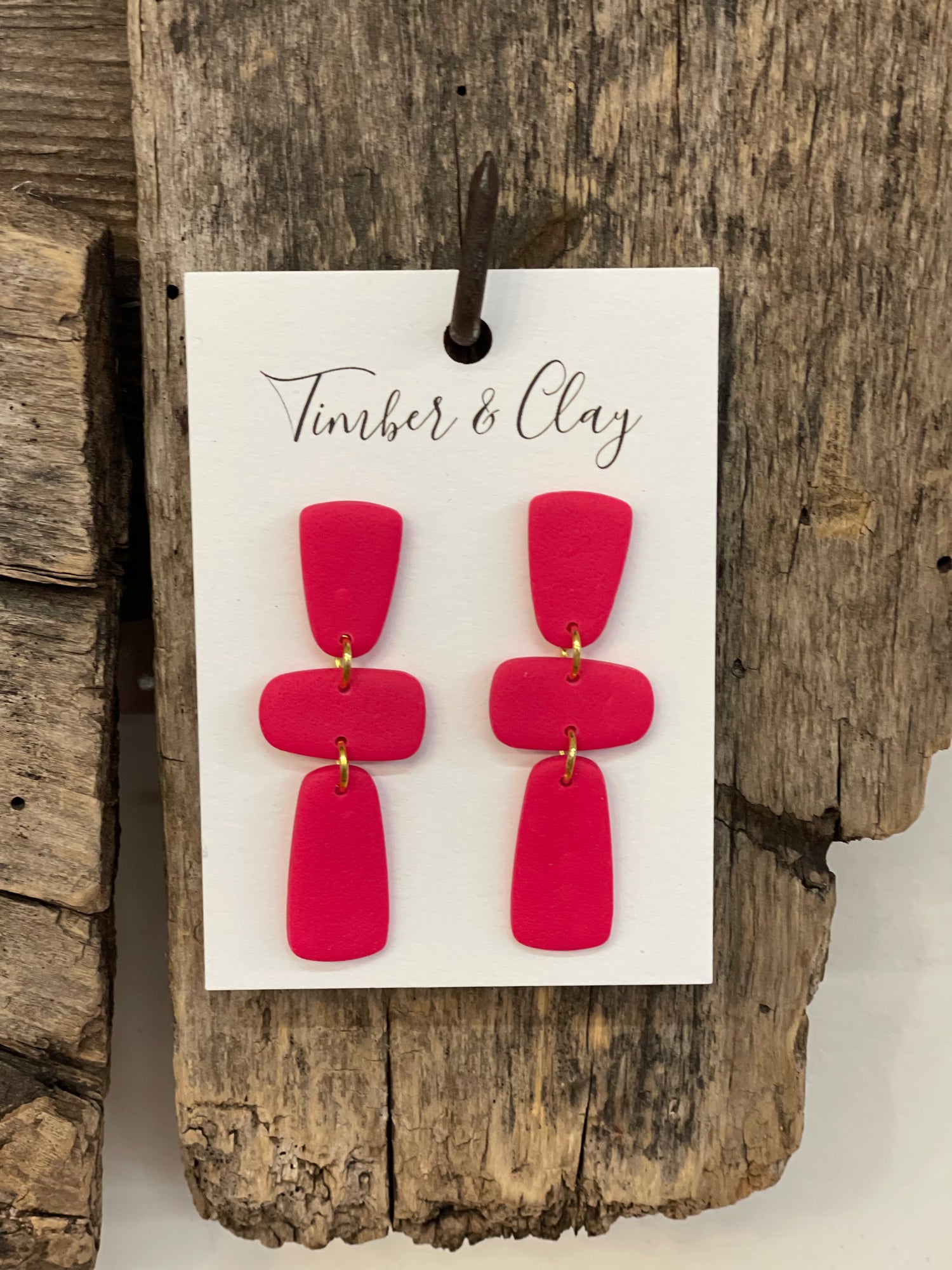 Add a pop of color to your outfit with these handmade fuchsia drop earrings by Timber & Clay. Made with polymer clay, these earrings are unique and sure to make a statement. (Your ears will thank you!)