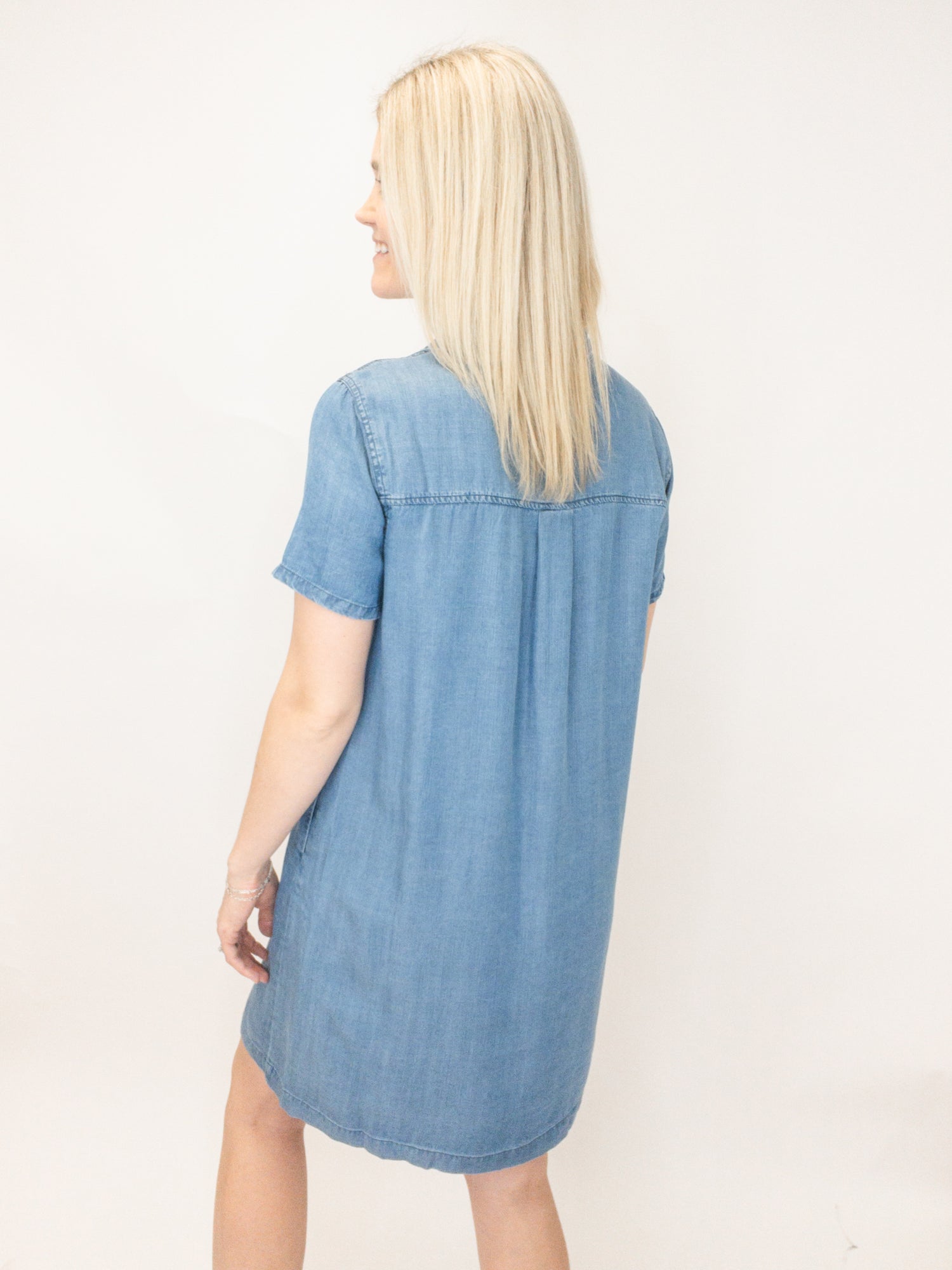 This Tencel Mini Dress is more than just a stylish denim look. With a button up collar and convenient pockets, it's perfect for any occasion. Made from 100% tencel, it's also incredibly soft and comfortable. Stay effortlessly cool in this must-have dress!